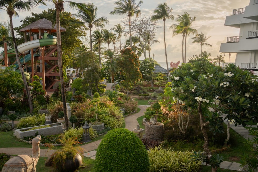 타본 팜 비치 리조트는 수상 경력에 빛나는 푸껫 해변 리조트입니다. 이 특별한 곳은 세련된 고급 객실, 카론 해변으로 바로 연결되는 해변 접근성, 대형 워터 슬라이드 워터파크, 7개의 개성 넘치는 레스토랑과 카페, 해변가에 위치한 미니 동물원, 그리고 12에이커 규모의 태국 식물원 열대우림을 제공합니다.