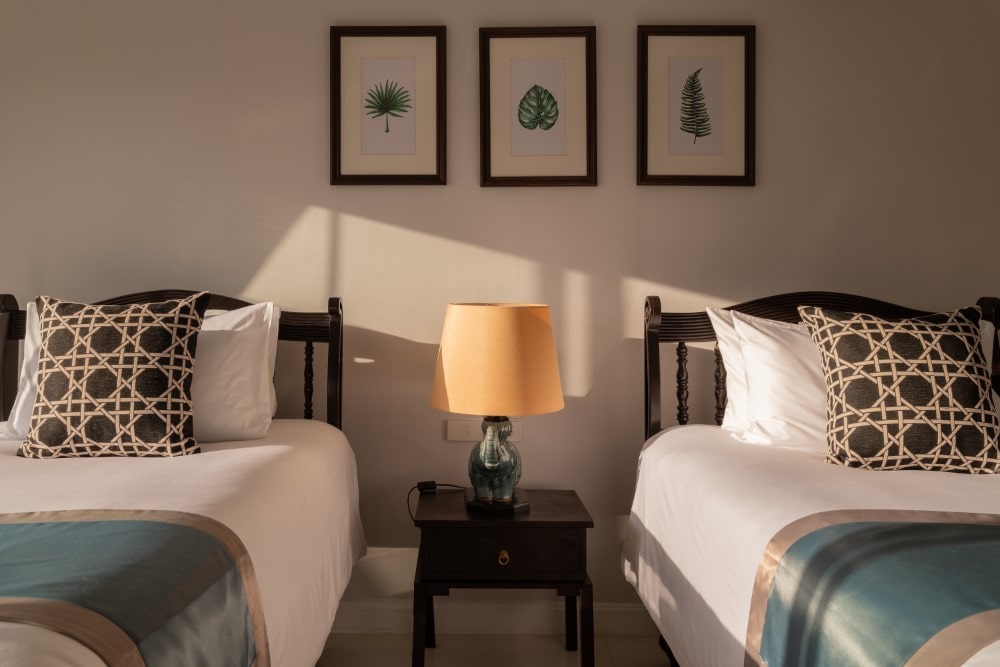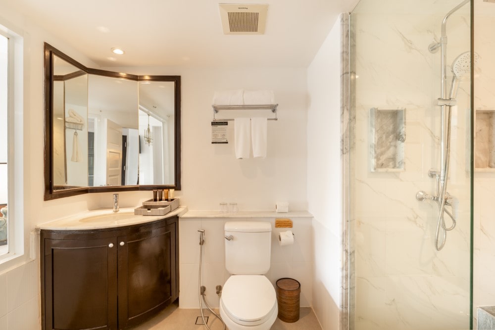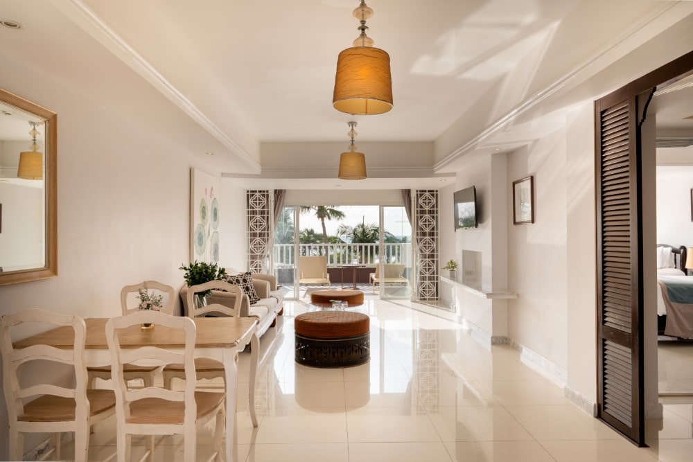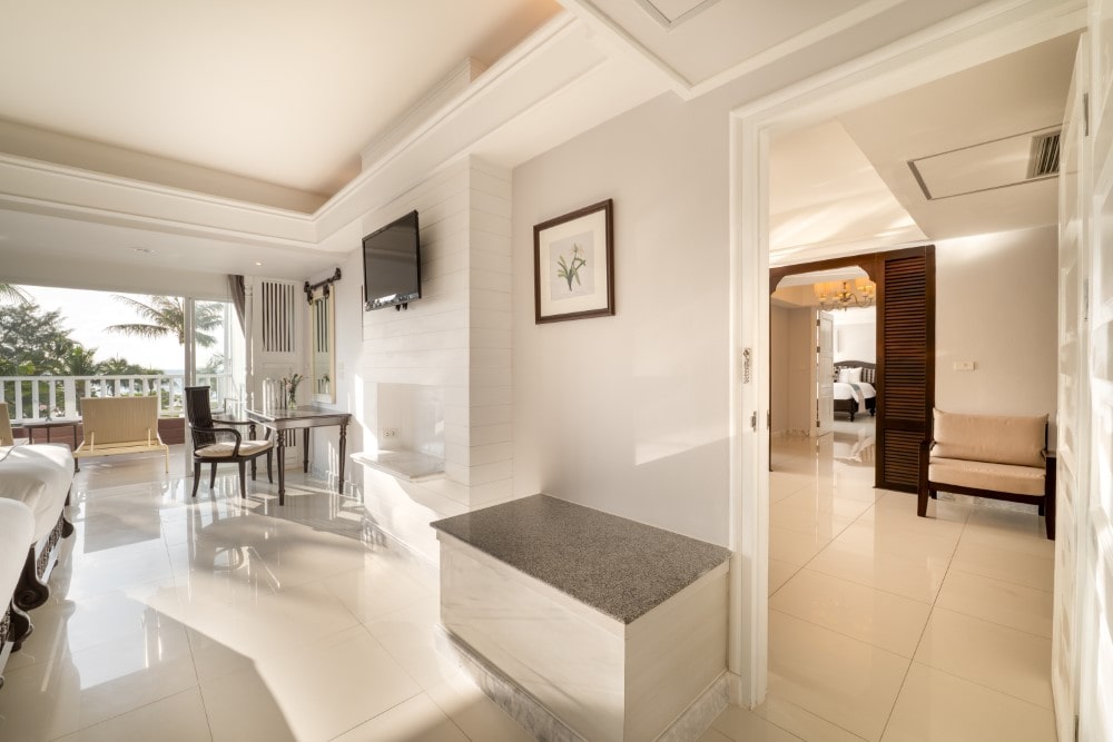 With a glimpse of Phuket’s beautiful sunsets and Karon beach, this tastefully furnished family suite consists of three spacious bedrooms, three private terraces, three bathrooms, and a living room accompanying multimedia devices. All three bedrooms each feature its own private bathrooms with invigorating rain showers and glass panels. The master bedroom has a bathtub.