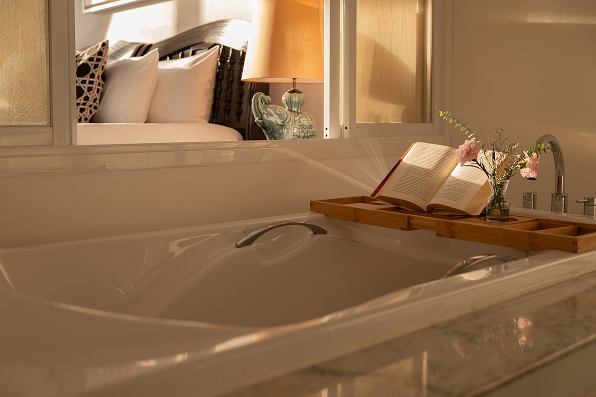 - A luxury bathtub in the master bedroom