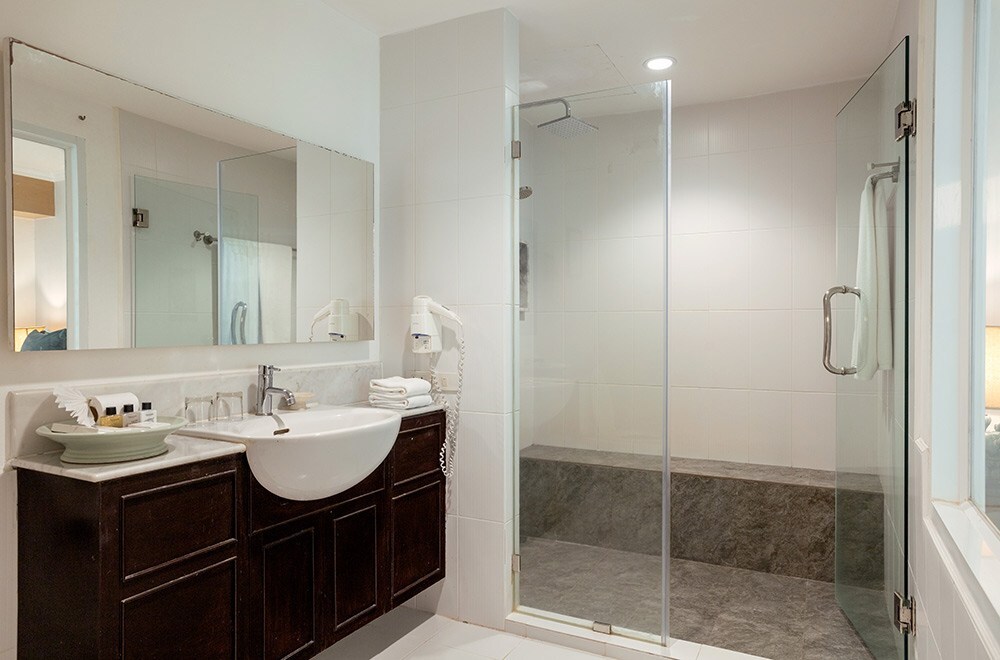 - 2 separate bathrooms each with separate walk-in rain showers