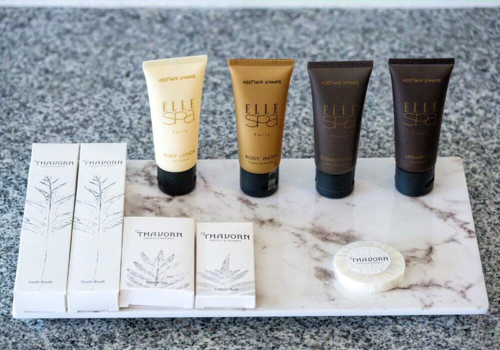 Each suite includes a Thavorn Palm Beach bag and premium bathroom amenities by Elle Spa Paris.