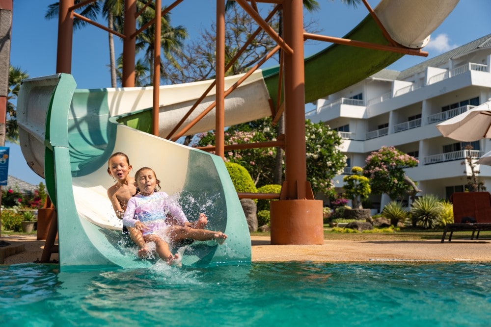 Our Phuket resort’s 14 metres tall water park-grade slides include 4 fun and exciting slides: curved, twin spiral, wide, and roller coaster spiral. Our water slides are conveniently located next to the Blue Heaven poolside bar, allowing you to dine on delicious poolside munchies while taking a break from enjoying the thrills and fun of our water slides.